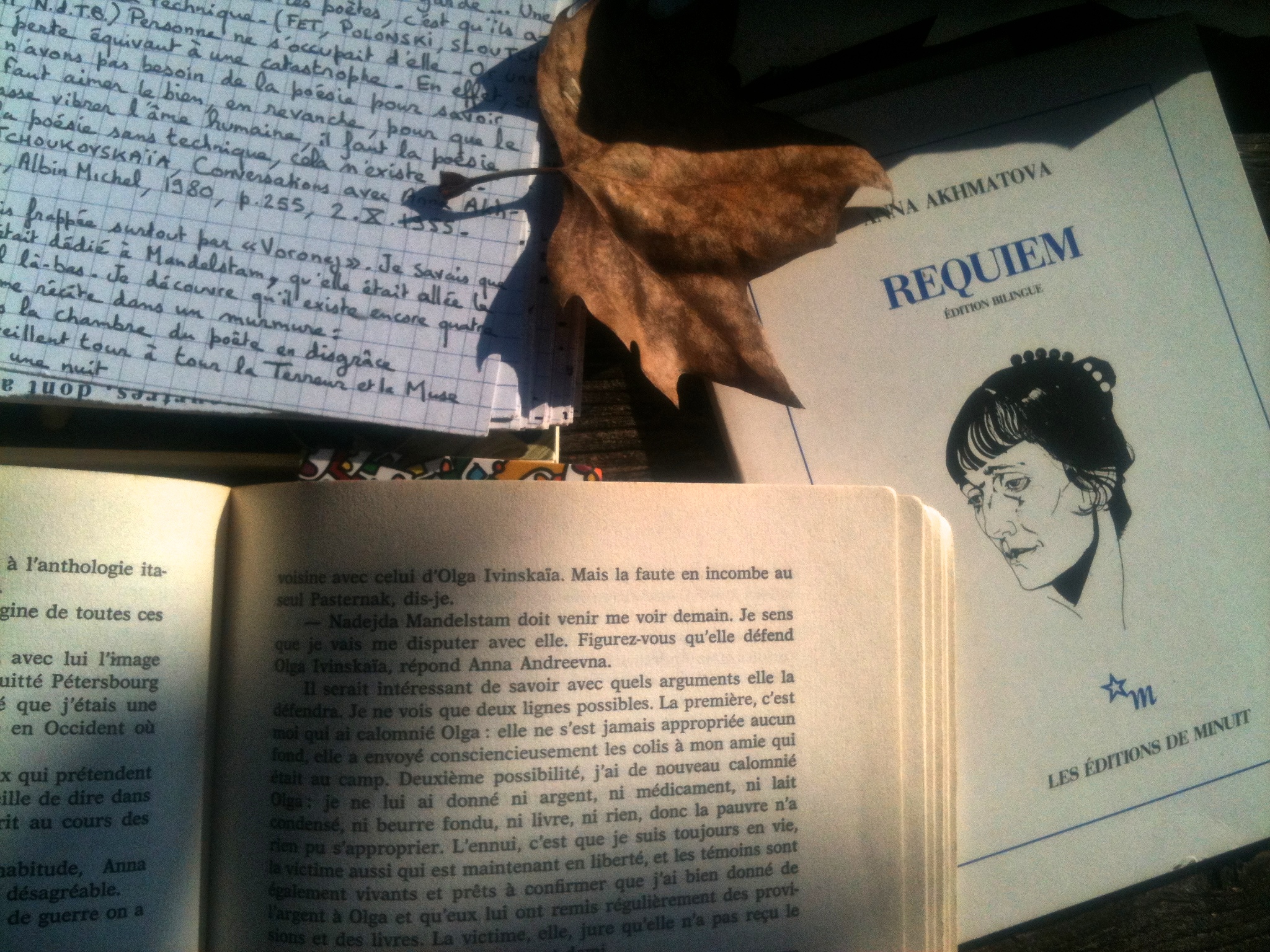 - Lydia Tchoukovskaïa, Entretiens avec Anna Akhmatova, Albin Michel, 1980. Lecture de Véronique Hallereau, Le maillage des lectures.